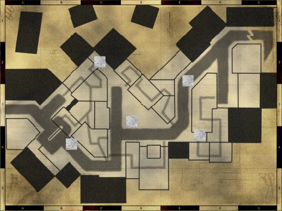 The map isn't as straight forward as it looks. Although all the action may seem to happen on the streets and center triangle, be prepared to to take sniper fire from adjacent buildings. Study the maps backdoors and 'other ways' or else you'll be dealing with semi - spawn campers in the either in rafters or shadows. Well placed snipers and machine guns should help in maintaining control.