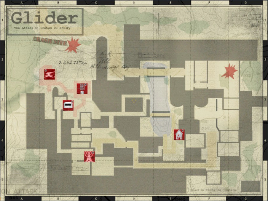 DOD_GLIDER by Wesley "Fuzzdad" Shull (wesley.b.shull@xo.com) June, 1944, Normandy Allied paratroopers have dropped behind the D-Day beaches to disrupt enemy communication and reinforcement to the front. Allied Objectives: - Destroy the '88' flak cannon - Destroy the "Freya" Radar set - Destroy the Radio room inside the castle - Capture the German forward supply house - Capture the German bunker Axis Objectives: - Clear the area of Allied paratroopers Textures: Chad "Masako" Barnsdale, Scott "Kamikazi!" Jordon, Arjan "IR" Bak, Daniel "kleinluka" Luka
